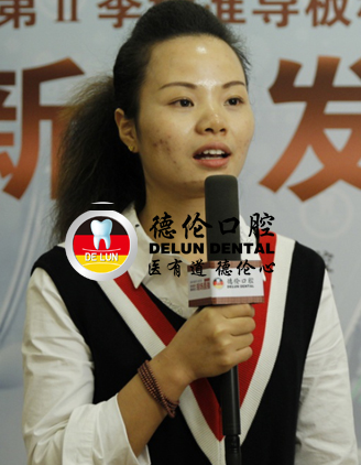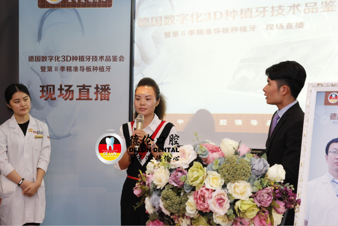 在11月14日舉行的德倫口腔“首屆3D導(dǎo)板數(shù)字化種植牙真人直播”的現(xiàn)場(chǎng),一個(gè)年輕的身影的走上了舞臺(tái),她正是德倫口腔3D導(dǎo)板數(shù)字化種植牙的受益者之一鄒女士。當(dāng)鄒女士聽(tīng)聞程武醫(yī)生要進(jìn)行種植手術(shù)直播的時(shí)候,她主動(dòng)提出希望可以到現(xiàn)場(chǎng)分享她的種植感受,用自己真實(shí)的經(jīng)歷來(lái)發(fā)聲,呼吁年輕人有任何牙齒問(wèn)題都需要及早治療,不要以為能拖就脫,結(jié)果錯(cuò)過(guò)治療黃金期。