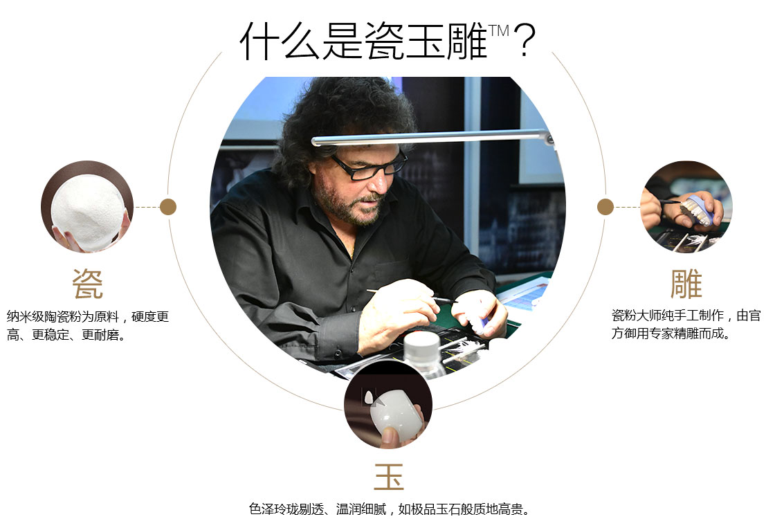 在瓷玉雕發(fā)布會現(xiàn)場,德國瓷粉大師Darryl John Millwood現(xiàn)場教學,3步簡化上瓷藝術(shù)。呈現(xiàn)了修復體自然透光、色澤逼真的精工技藝。